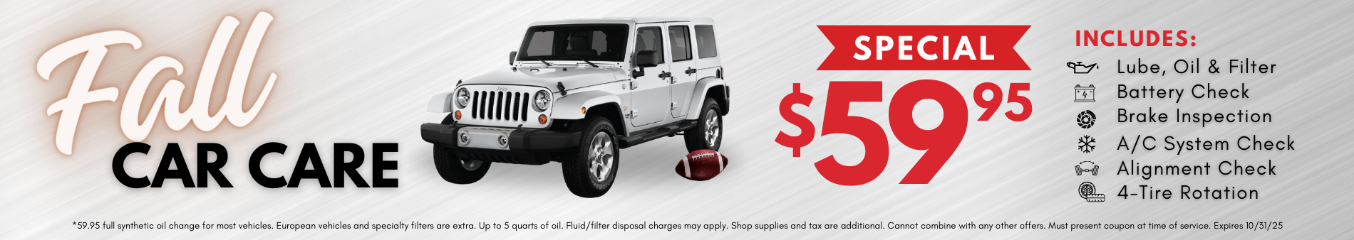 Come in for our $59.95 Fall Car Care Special at Virginia Automotive Service.